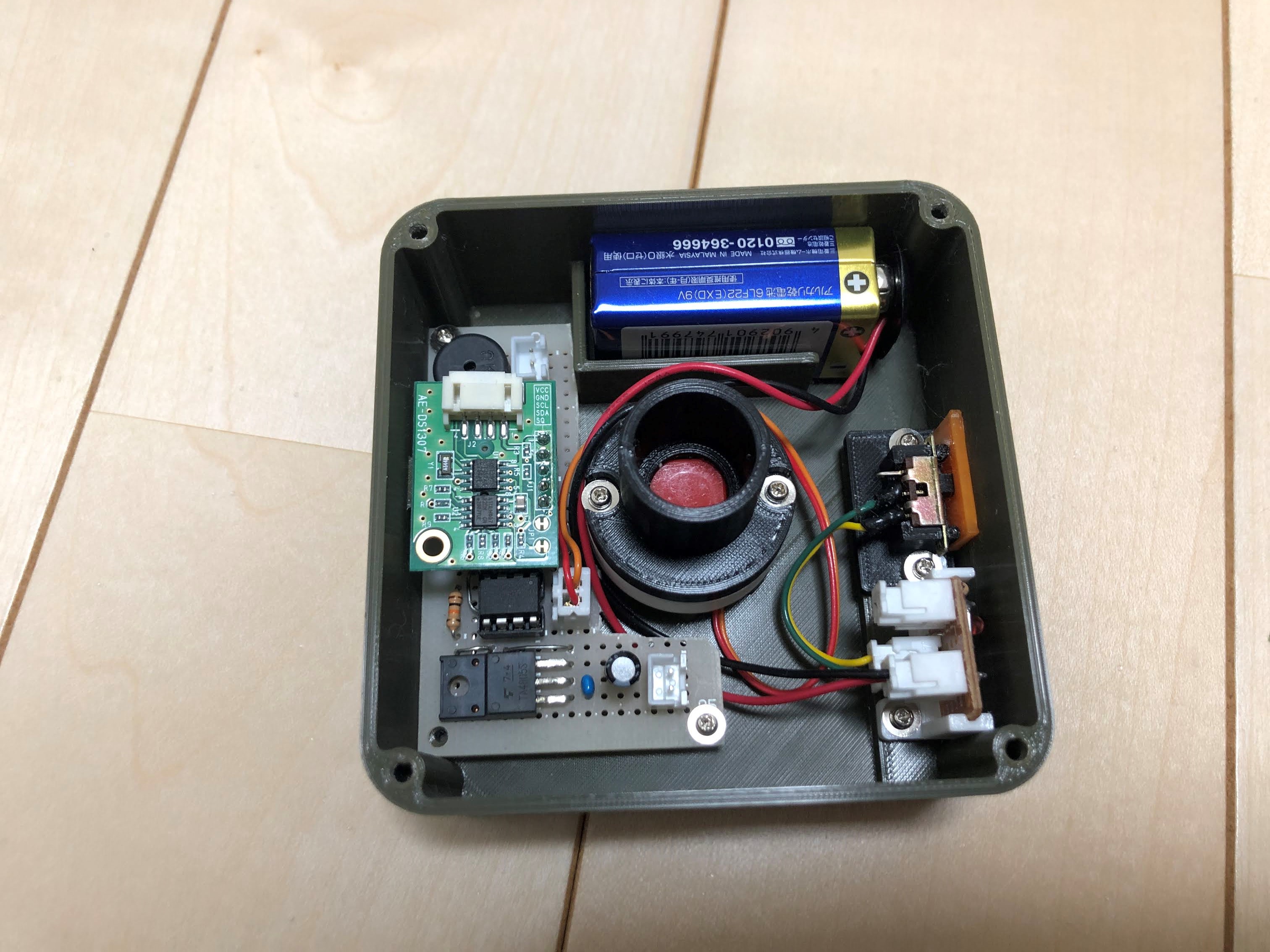 9V電池を使用しましたが、容量が400mAh程度しかないらしく電池が持たないのでUSB給電にしたいですね。