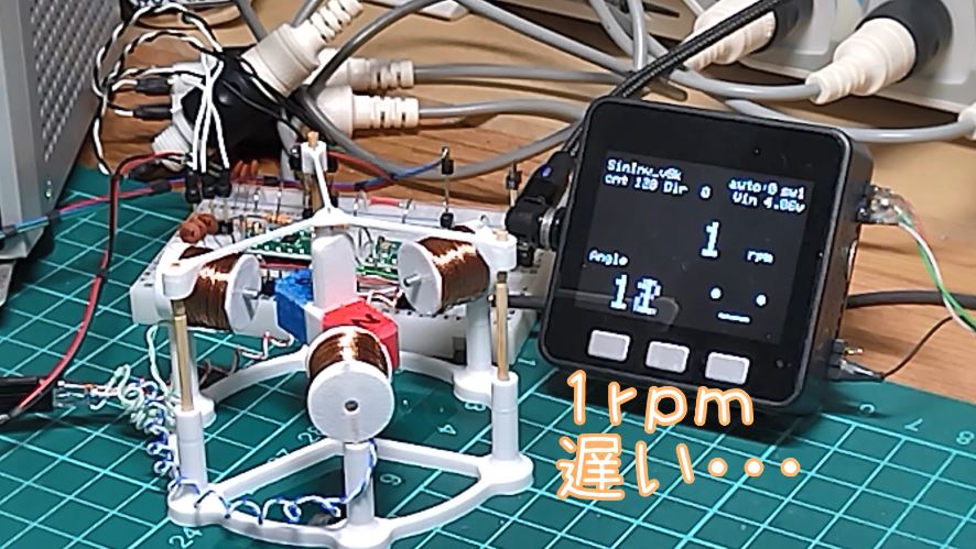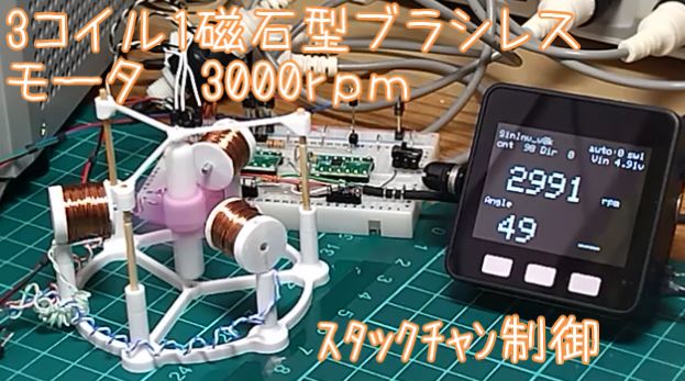 3相ブラシレスモータを1rpm、 秒針速度の超低速回転~3000rpm超で回す