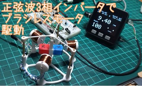 3000rpmまで3相正弦波ベクトル制御で回す例はこちら