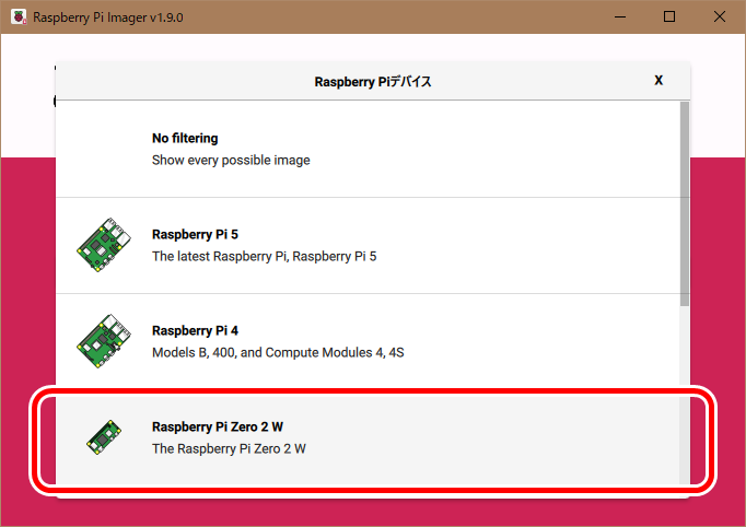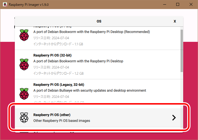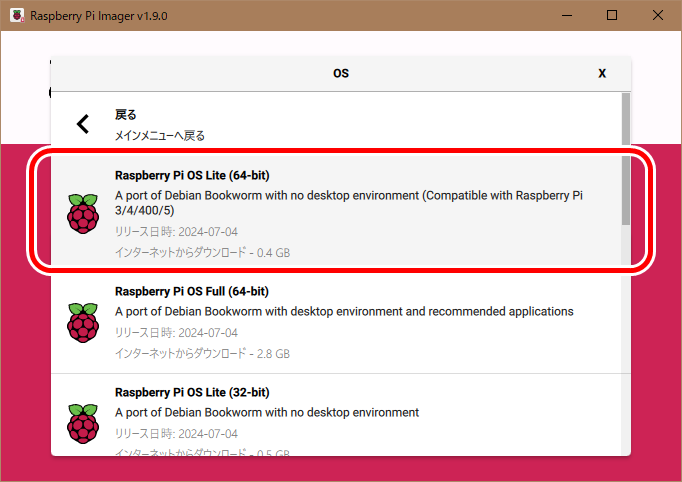 Raspberry Pi Imagerを使用し、Raspberry Pi OSをセットアップします。