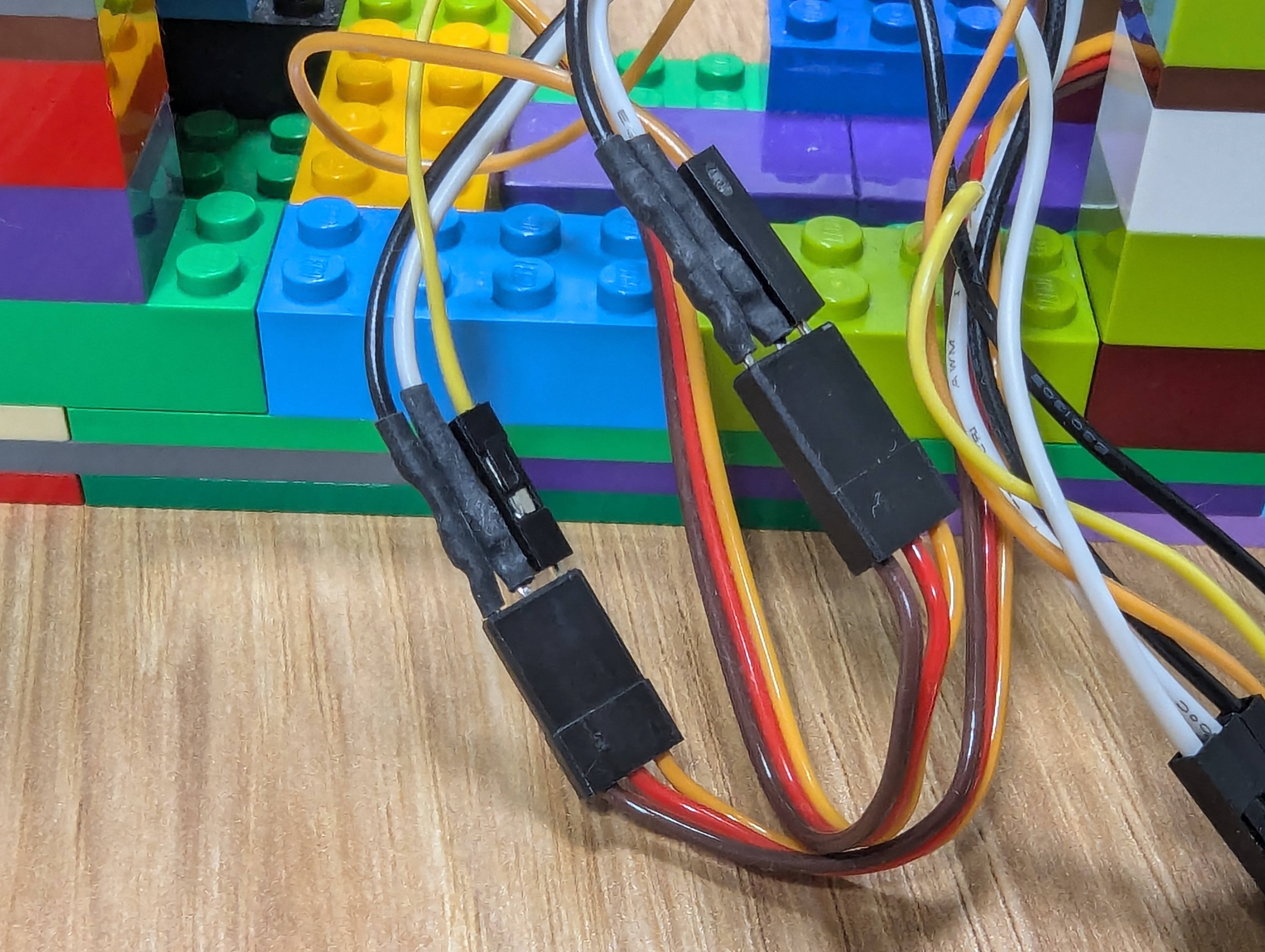 サーボモーターにはGND (茶色), 5V (赤), 信号 (黄色)の3本の線があります。