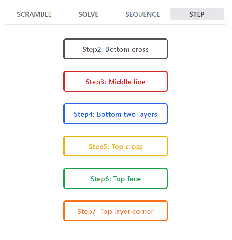 - STEP: ルービックキューブの解法(CFOP法)の各ステップごとにランダムな状態に崩す
