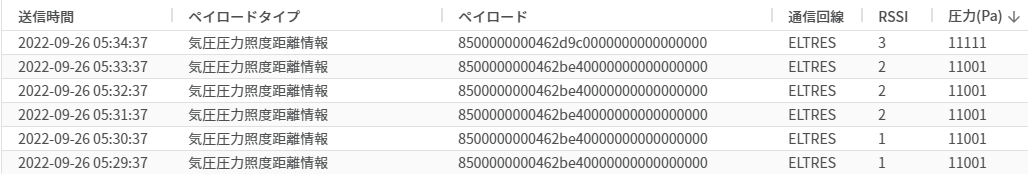 圧力データに、下記の持ち物があるかどうかをバイナリで下記キャプチャ画像のように表示。(LSBからMSBの順)