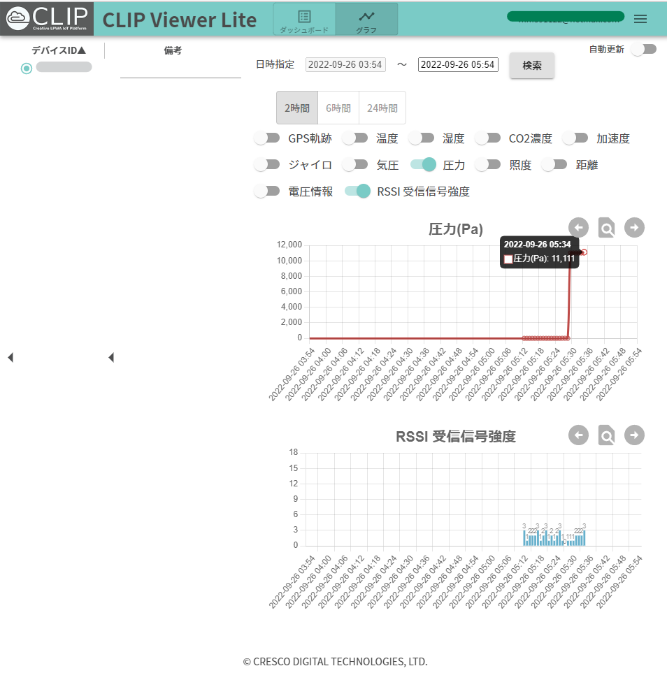 ELTRESで1分間隔で送信したデータを、株式会社クレスコ・デジタルテクノロジーズのCLIP Viewer Liteを用いて表示。