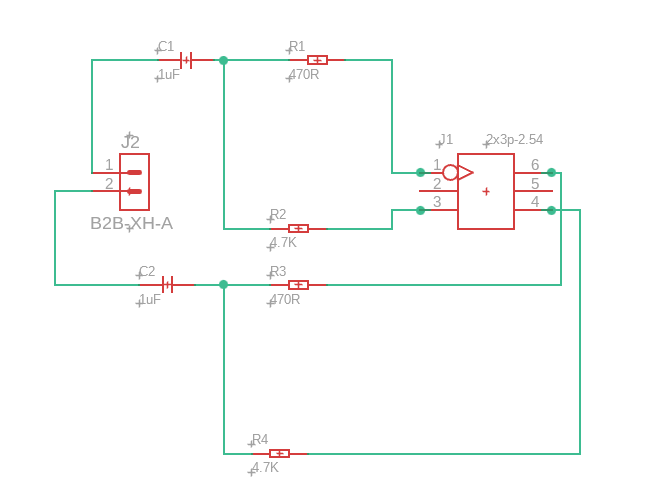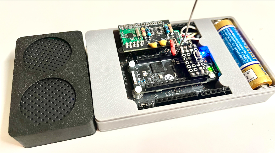 インピーダンスの整合:後段の抵抗を 470Ω と低めに設定することで、配線からの外来ノイズの影響を抑えつつ、安定した信号をSpresenseへ伝送しています。直流(DC)カット:DSPの出力に含まれる直流成分がSpresenseの内部バイアスに干渉しないよう、直列にコンデンサを挿入しています。 を使用することで、低音域(カットオフ周波数 約 程度)を損なうことなく、クリアな音質を実現しました。