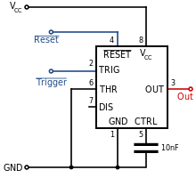 NE555の機能を改めて調査。WikipediaのNE555の記事によると、基本的な回路構成が3タイプあることが判りました。