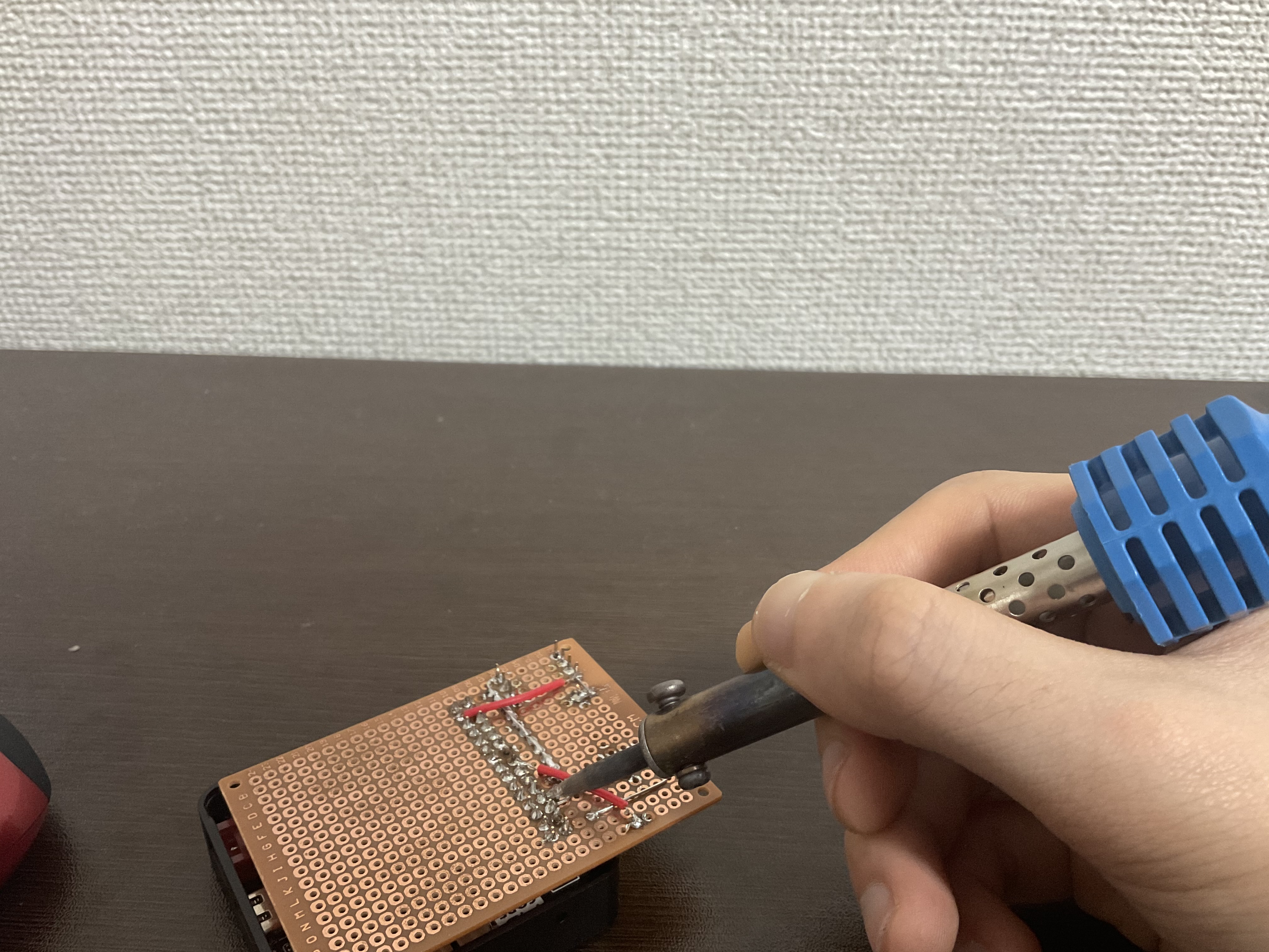 次に、M5Stackに取り付けられるようにユニバーサル基板にはんだ付けしましょう!