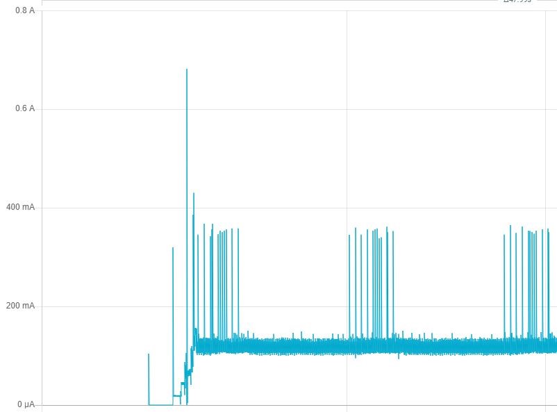 起動時に突入電流が、約1A近く流れ、その後、100mA~400mAで位置していますが、