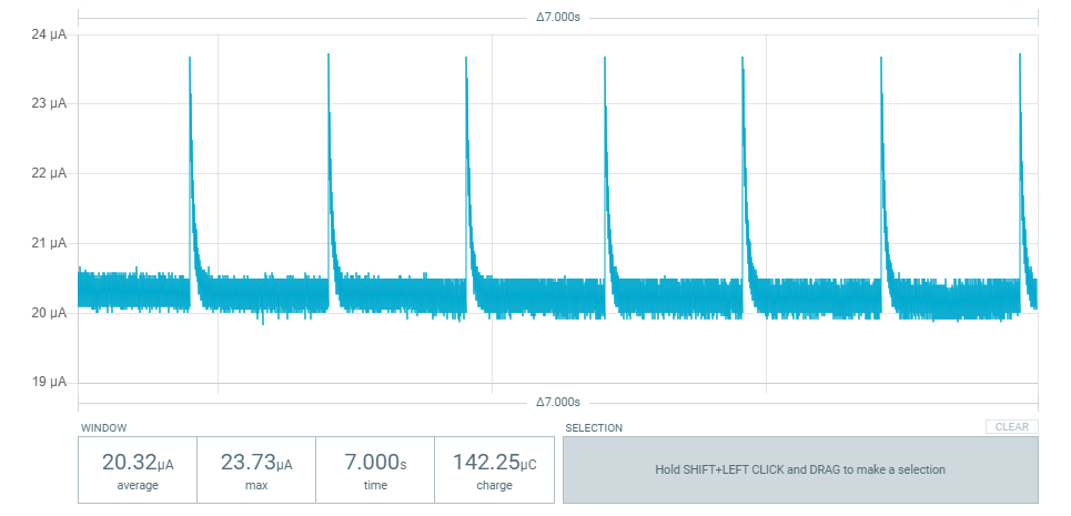 スリープしている間は、約20.32μA消費していることがわかりました。
