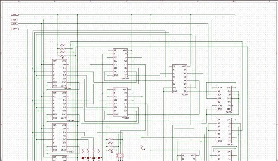 4BitCPU。当時ならこのくらいの配線は手配線で作ったのですが、今はちょっと手が出ません。