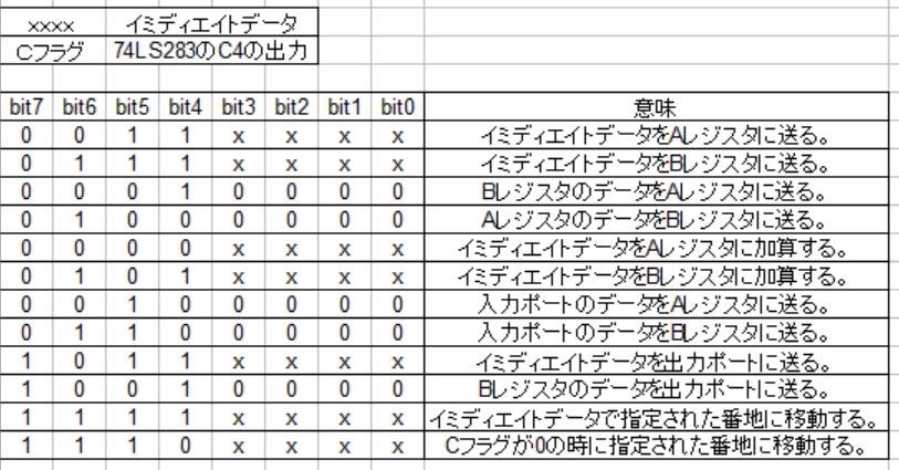 CPUの命令表