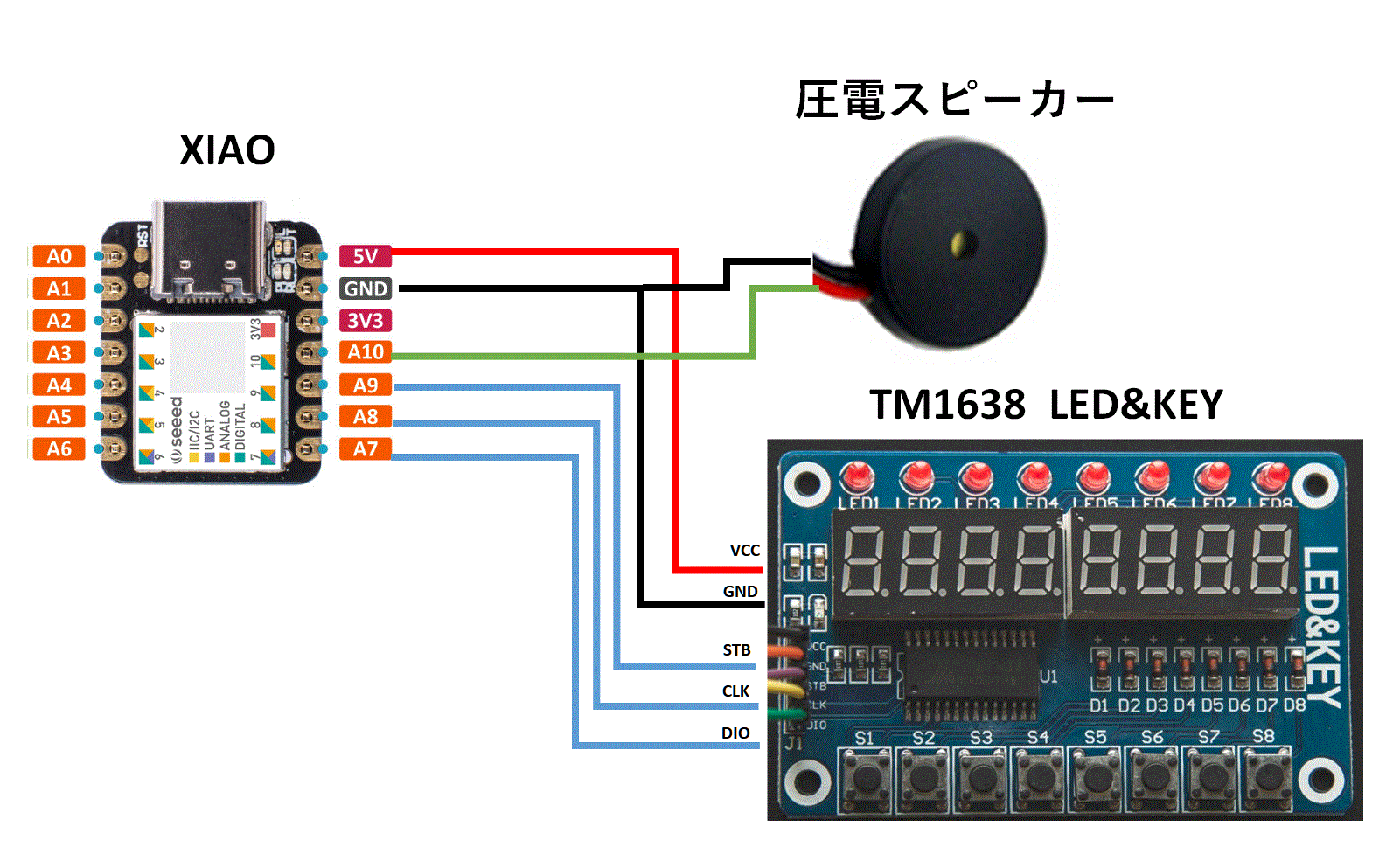 5線で7セグ/LEDとスイッチ入力ができるLED&KEY(TM1638)を使って、