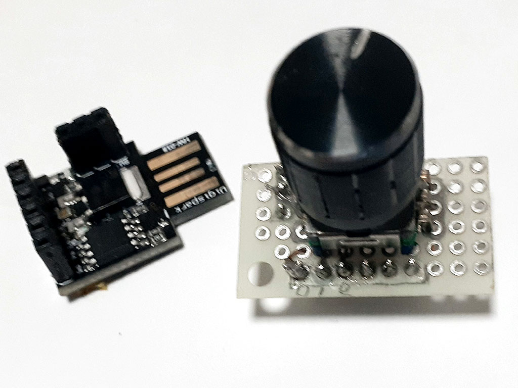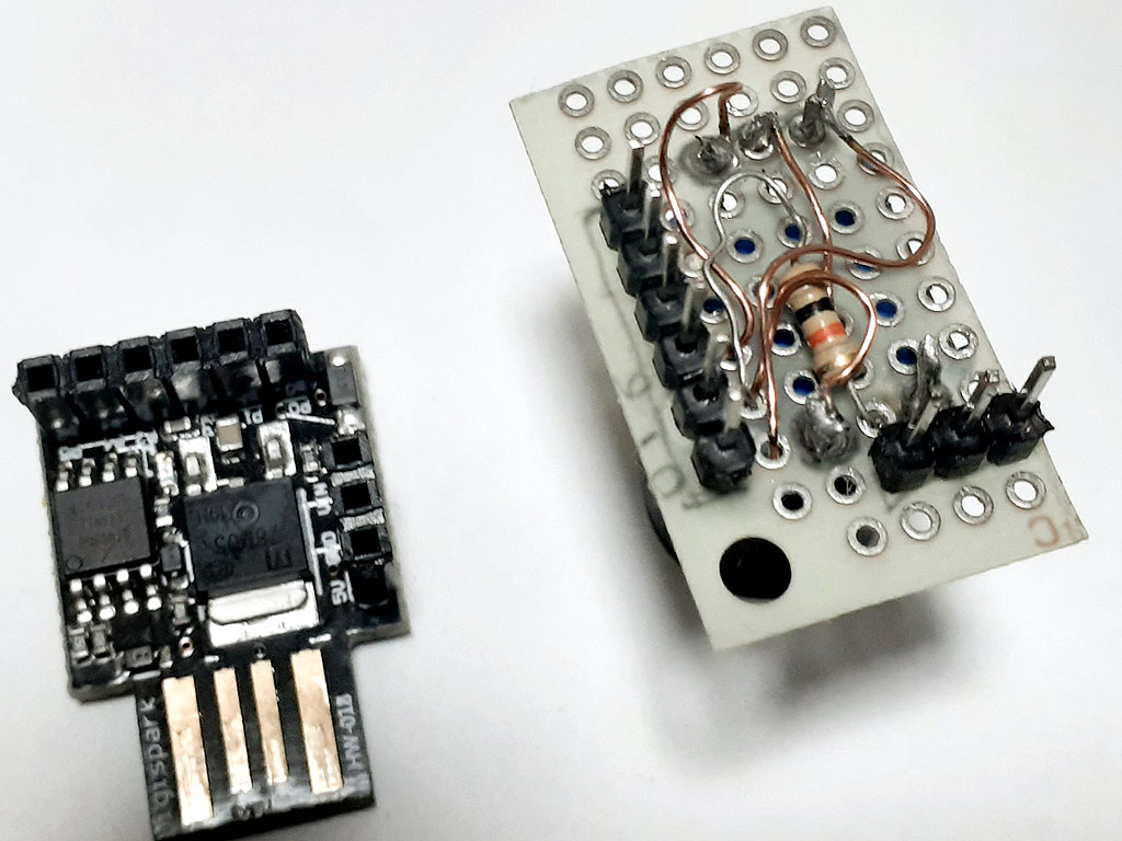 これまでATmega32U4でいくつか作ってきたのですが、直接PCのUSB端子に挿せるDigisparkというとても小さなボードがあることを知り、Digispark(互換機)で新たに作り直しました。
