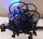 一般的なテオヤンセンリンク4足、左右180度位相差では2点支持期間ができるため、転びやすいですが足の先の靴や低重心かつ安定化する揺動電池搭載の工夫で不安定ながら転ばず4足で歩きます。