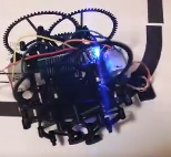 15mm幅程度の黒線を描いたコースを作成しコース上にセットして動かすと黒線をトレースして歩いていきます。