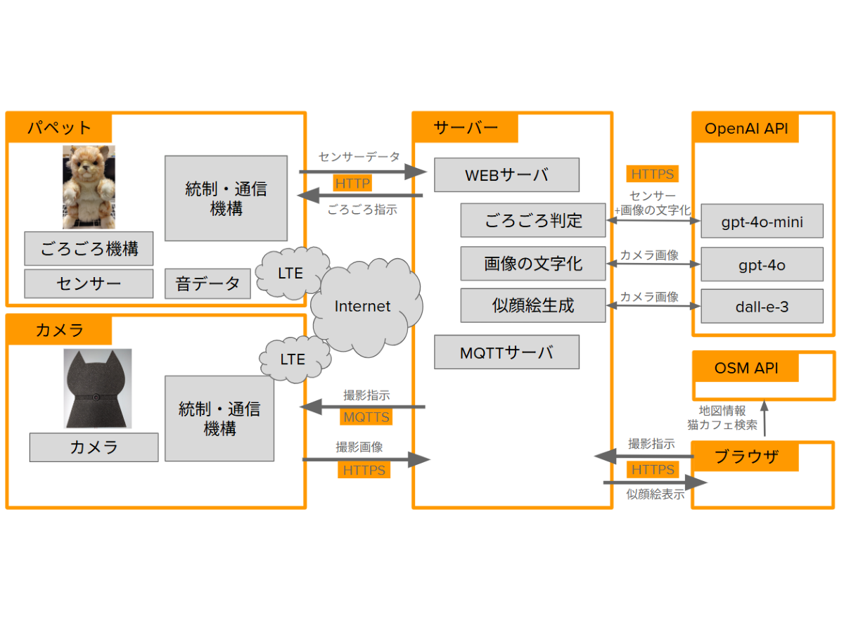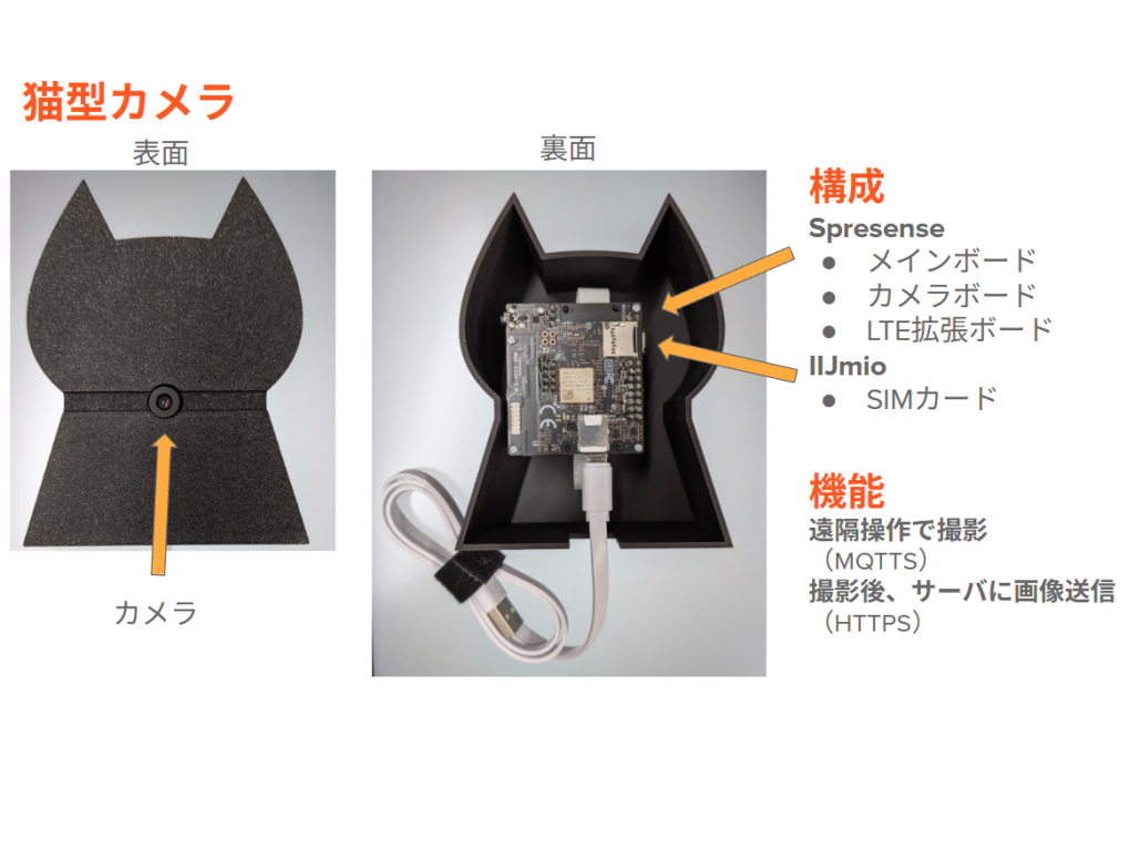 さらに、Spresenseカメラボードと生成AIを組み合わせ、撮影した写真を「猫まみれ」にするサービスも追加実装しました。