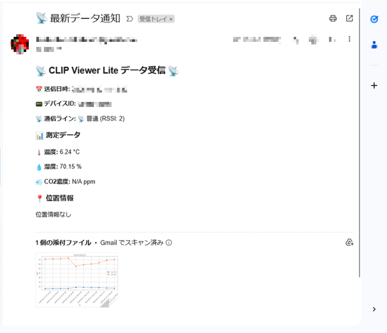 メールについても指定時間ごとに送信+一緒に温度グラフも送られることを確認できました。
