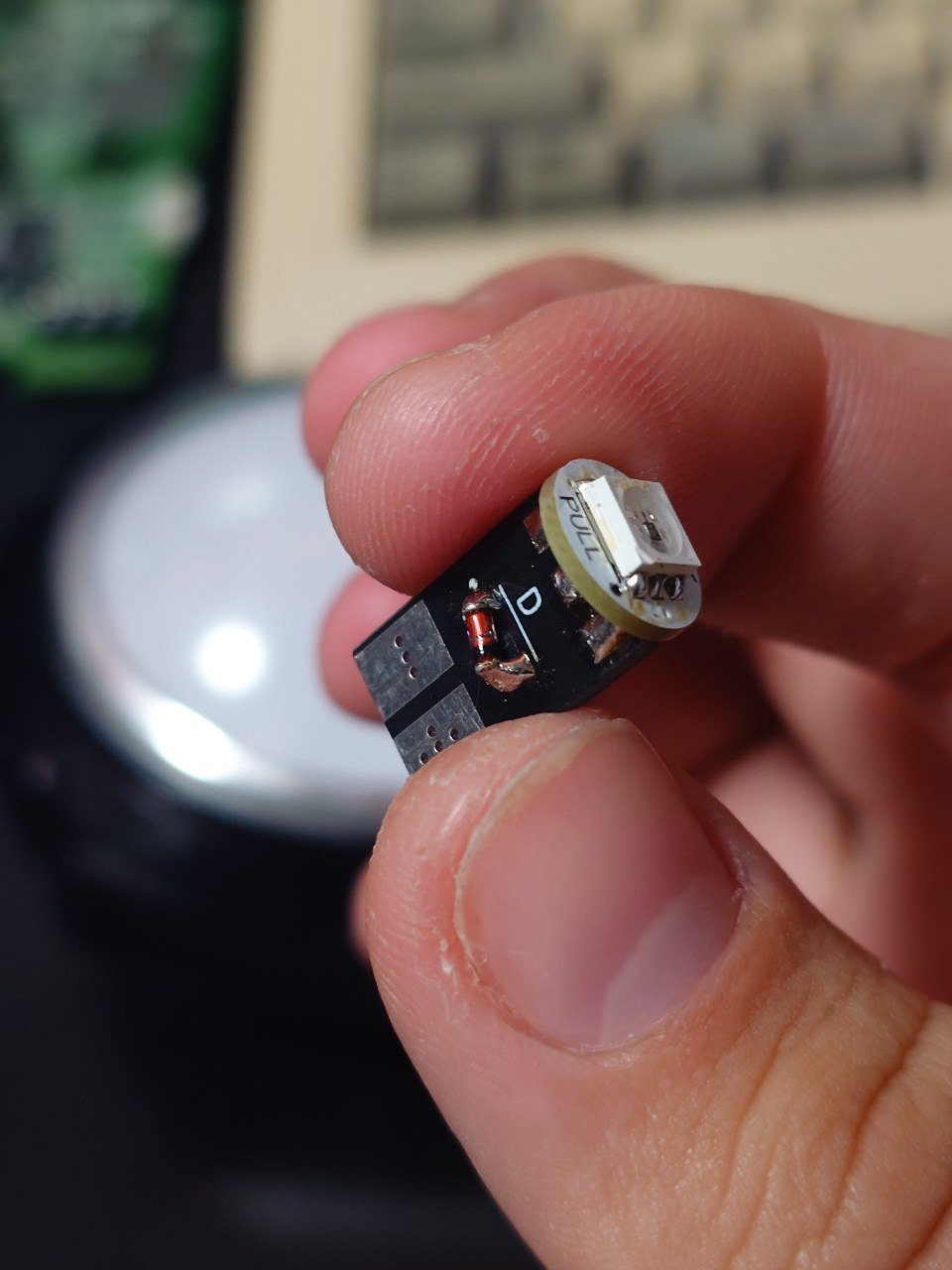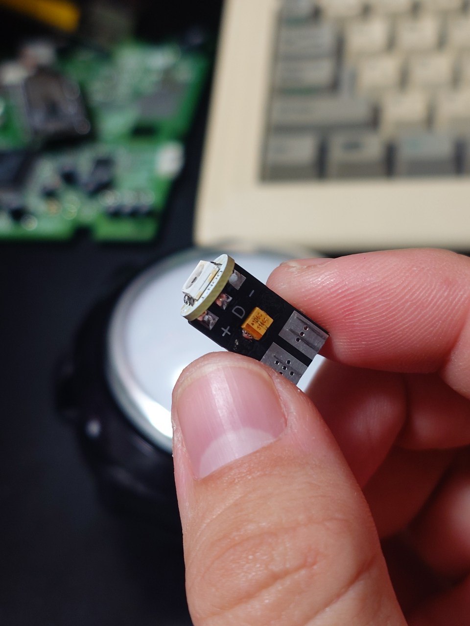 そして二つの基板を合わせて先ほどの回路を電球(っぽい)形に実装しました:
