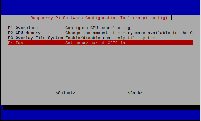 FANを選択。GPIOのピン番号と動作温度(60℃~)を設定できます。