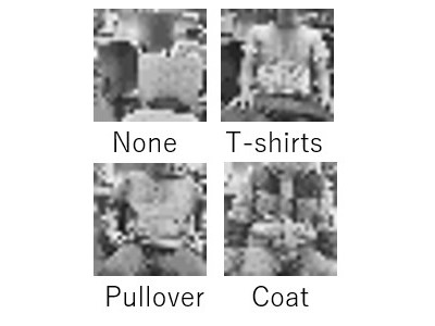 データセットは、FashionMNISTのクラスを参考に以下の4クラスについて、それぞれ、カメラボードで連続撮影することで収集してます。