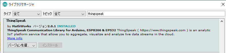 開発環境は、連携するThingSpeakのライブラリのあるArduino IDEで行いました。ThingSpeakもWebサイトは英語ですが、ヘルプページの日本語が充実しているので問題いなく連携できました。