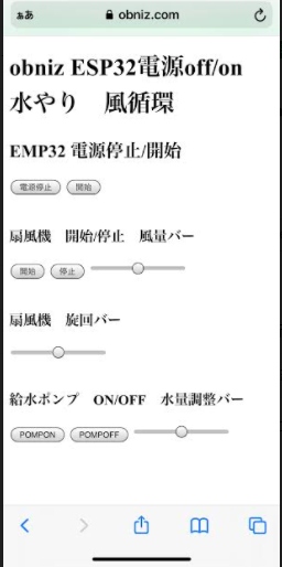 <h1>obniz ESP32電源off/on 水やり 風循環</h1>