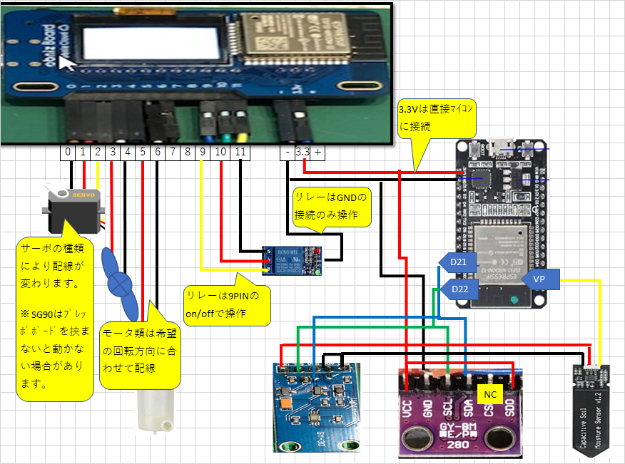 | VP | BME280 | -- | BH1750 | -- | 土壌湿度 | AOUT | |