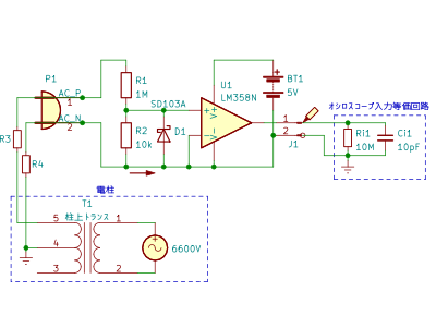 ログインしてコメントを投稿するオシロスコープの話とは関係ないですが、ゼロクロス検出回路に LM358 を使うならヒステリシス回路を追加したほうがいいですね。TI のアプリーケーションノートで使っている TLV7011 はヒステリシス機能が内蔵されているので省略されていると思われます。