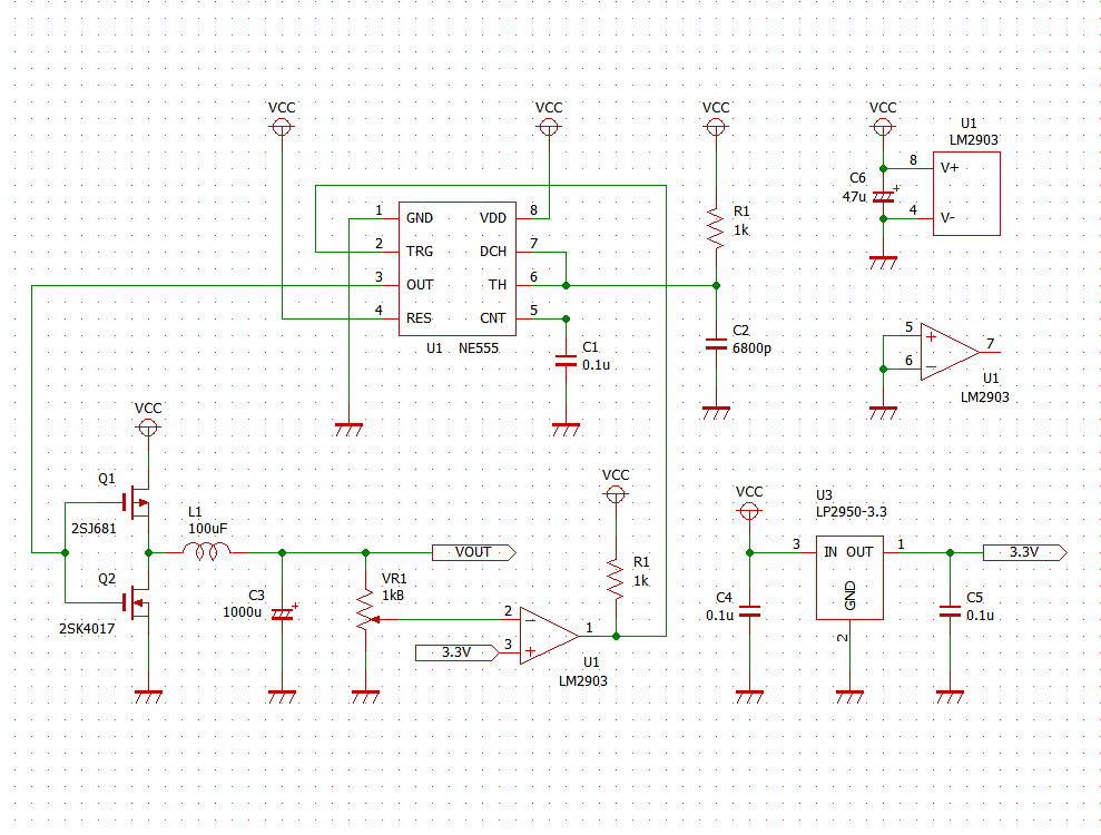 先日、NE555で3.3V出力の降圧DC/DCコンバータを作ってみたという記事を投稿した。記事末尾に、今後の課題として「出力電圧を自在に可変すること」と「調整なしで発振周波数を決めること」の2点を記載した。