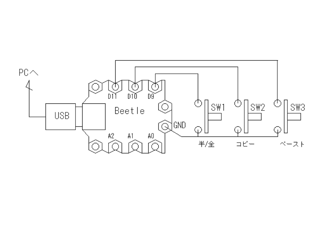 マイコンは、Arduino Leonardo互換のマイコン「Beetle」をつかいました。