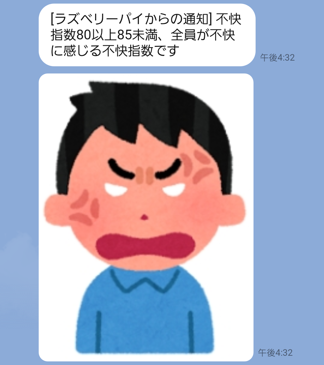 message = "不快指数80以上85未満、全員が不快に感じる不快指数です"