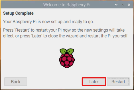 再起動を促されますが、まだやることが残っていますのでここでは"Later"をクリックします。