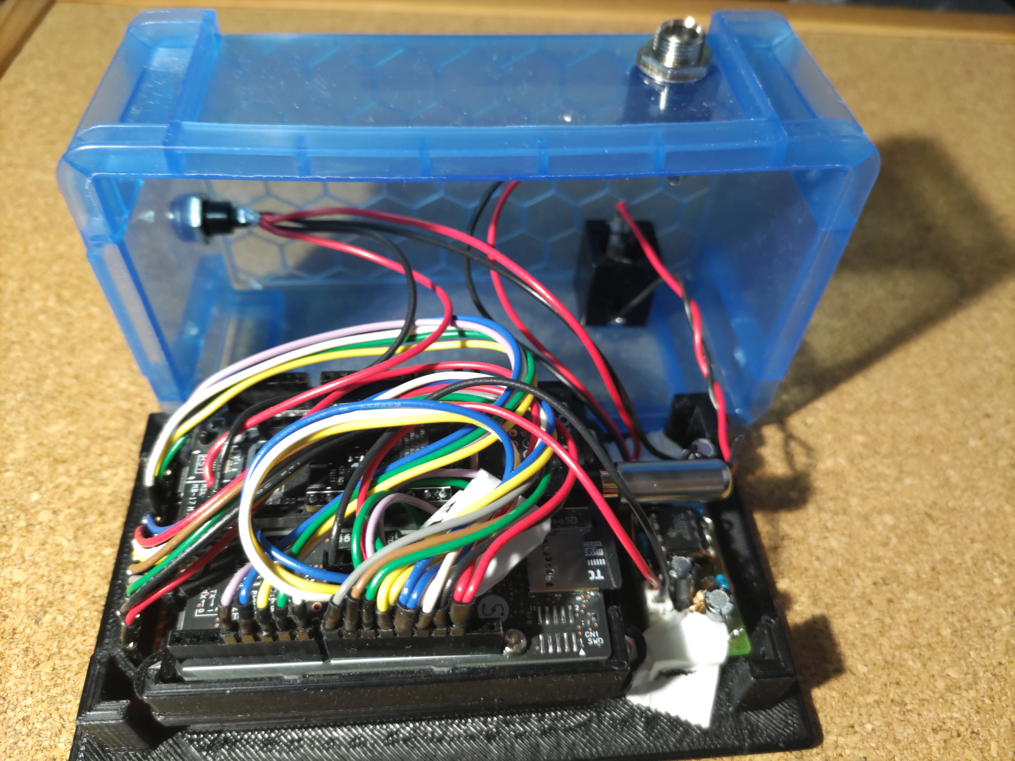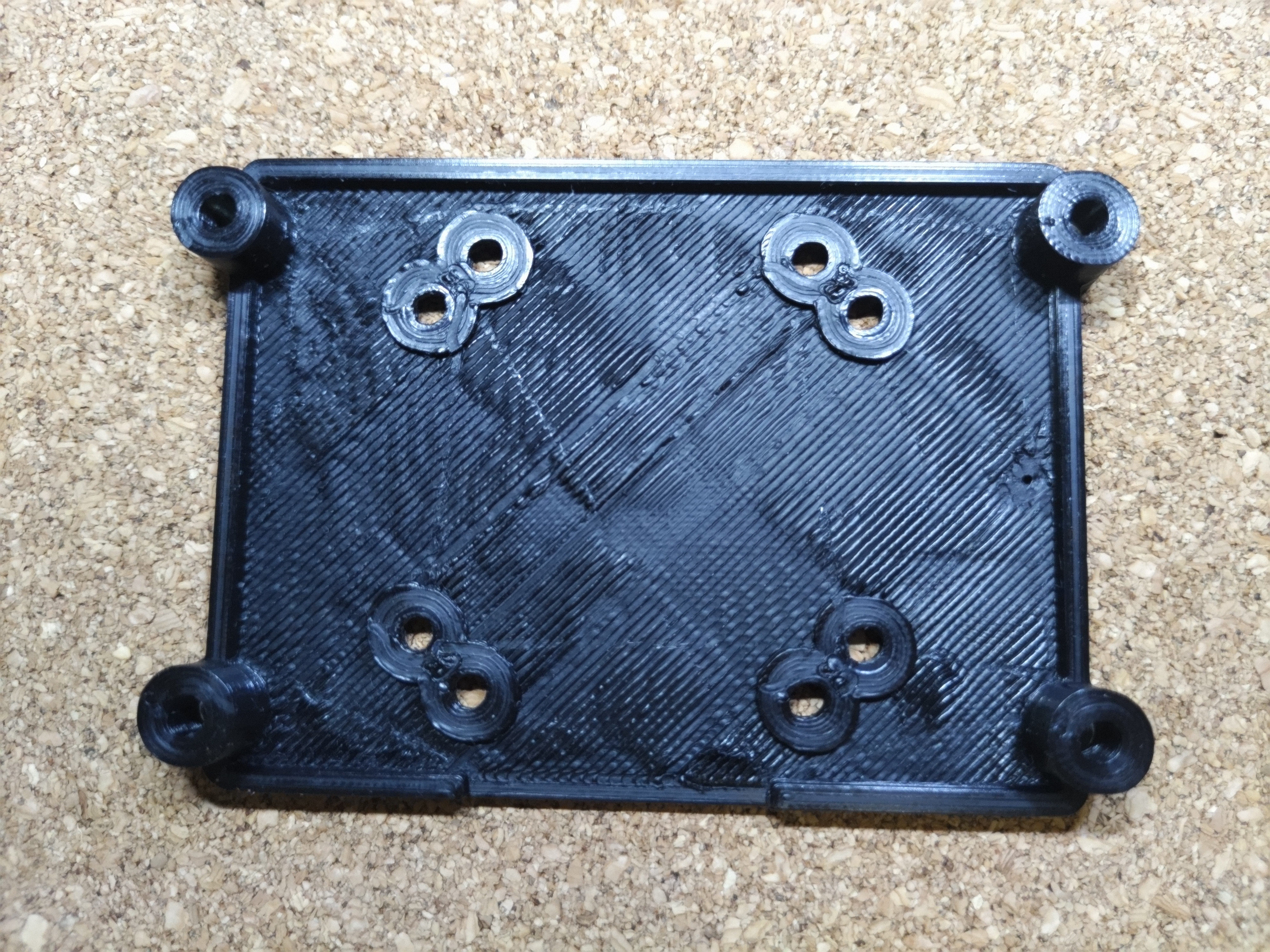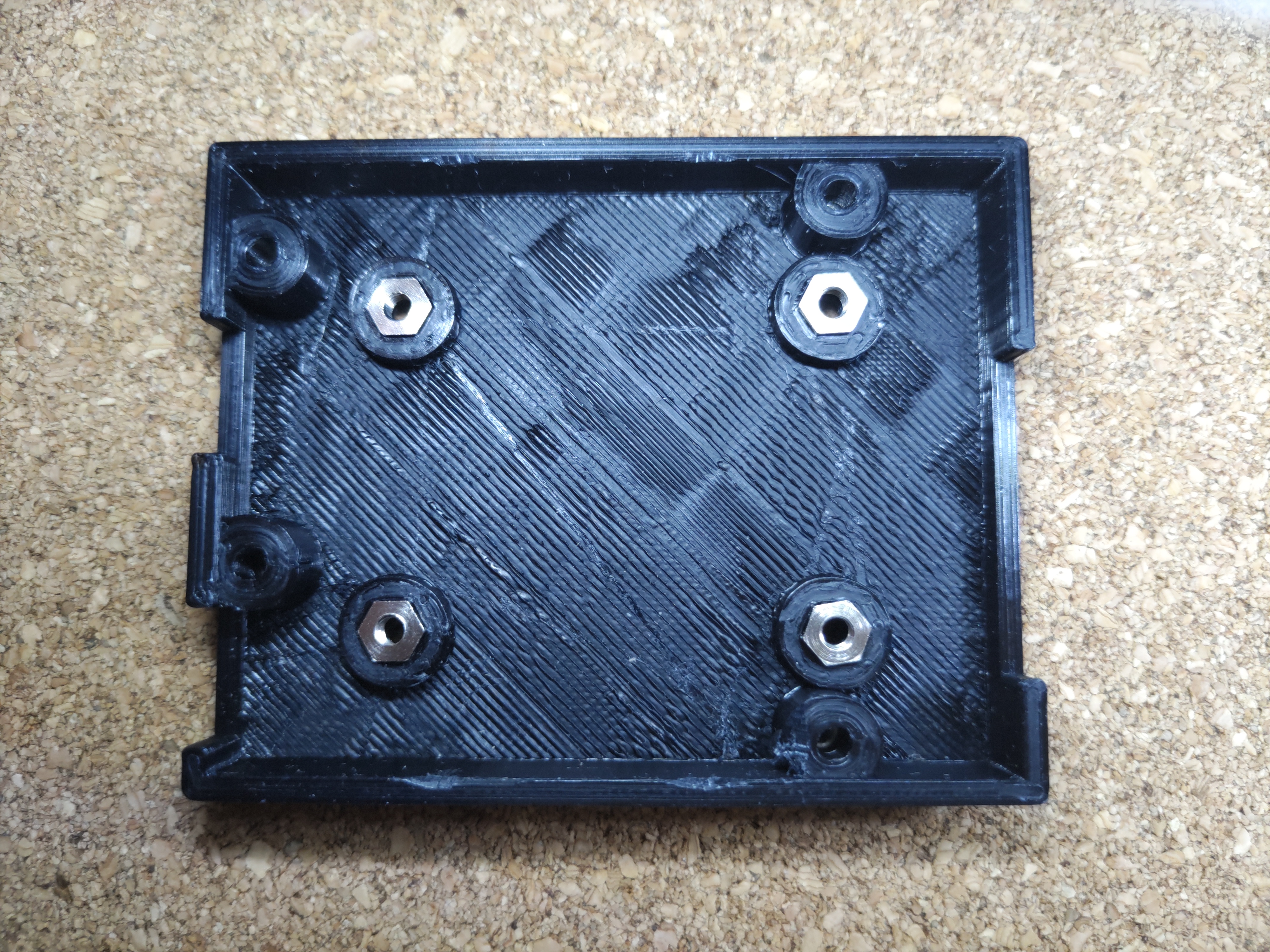 ジャック部分それなりに力が掛かるので、 3Dプリンタで作るとすぐに割れてしまいそうだったため、家にあった丁度いいサイズのケースに、ジャック部分だけ固定して、蓋と基板固定部分だけ 3Dプリンタでちょうどいいサイズに作りました。