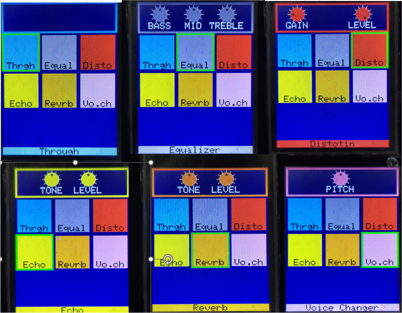 こんな感じで現状6個のエフェクターを切り替えできます。
