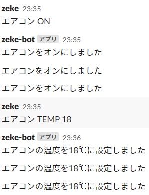 slack("エアコンの温度を" + temp + "℃に設定しました");