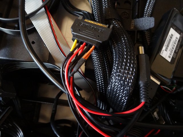 まあ昔からのお約束ですが、パソコンの電源は一般的に、「黄色:12V」「赤:5V」「オレンジ:3.3V」「黒:GND」です。