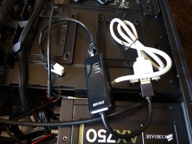 USBは、マザーボードのヘッダから、ケース用の変換コネクタを使って。