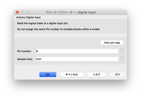 Simulink Support Package for Arduino HardwareのCommonからDigital Input、Digital OutputをSimulink画面にドラッグ&ドロップする。