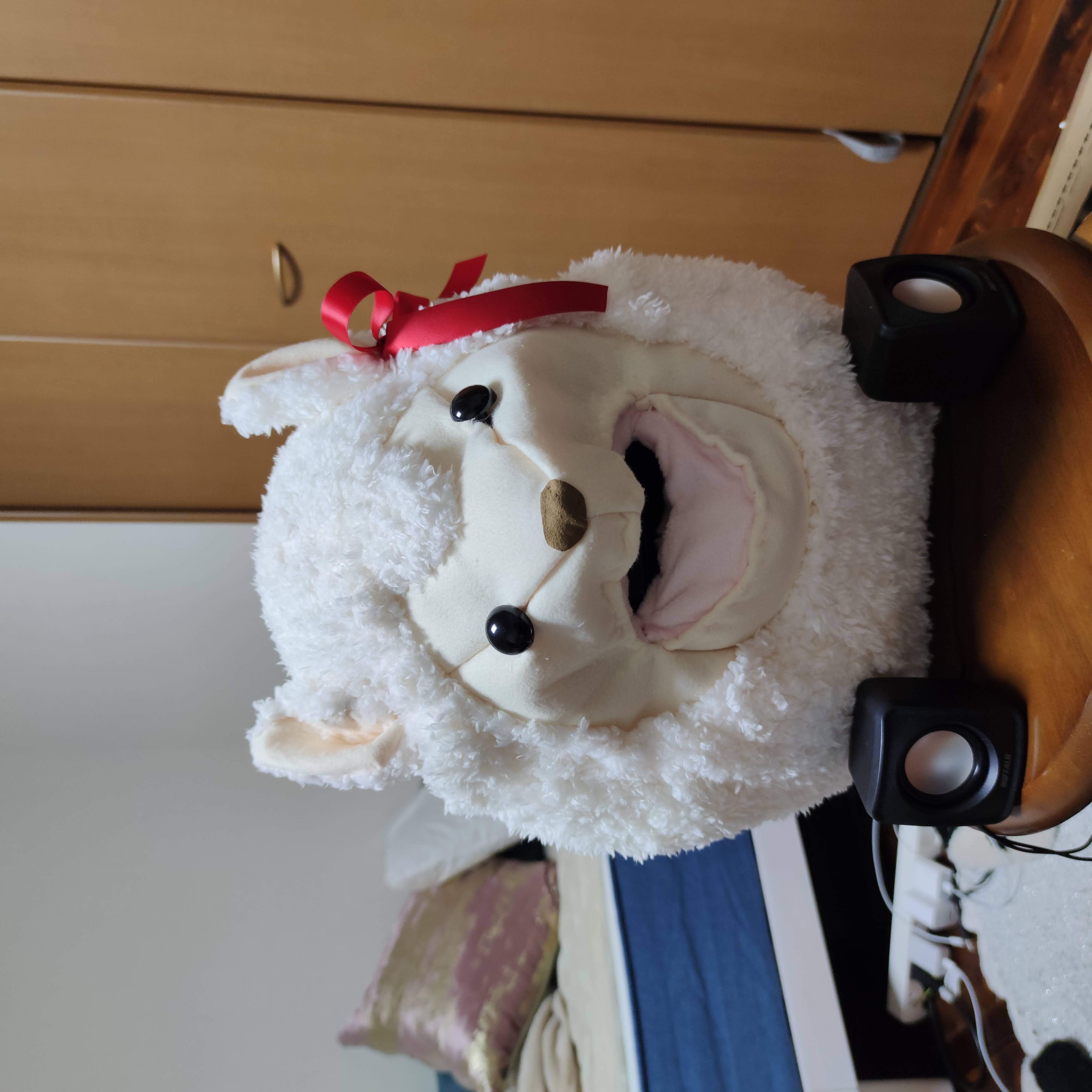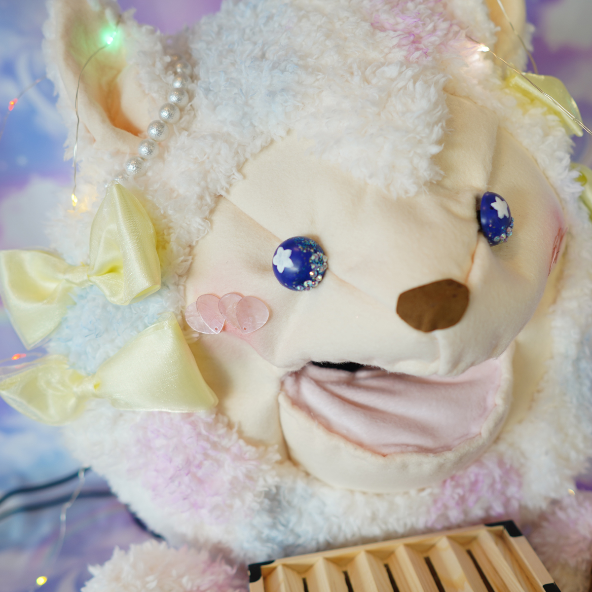 頭部は眼を可愛く彩色してハイライトを入れたり、白いアルパカの毛にパステルカラーでペイントしたり、可愛くリボンを付けたりしました。