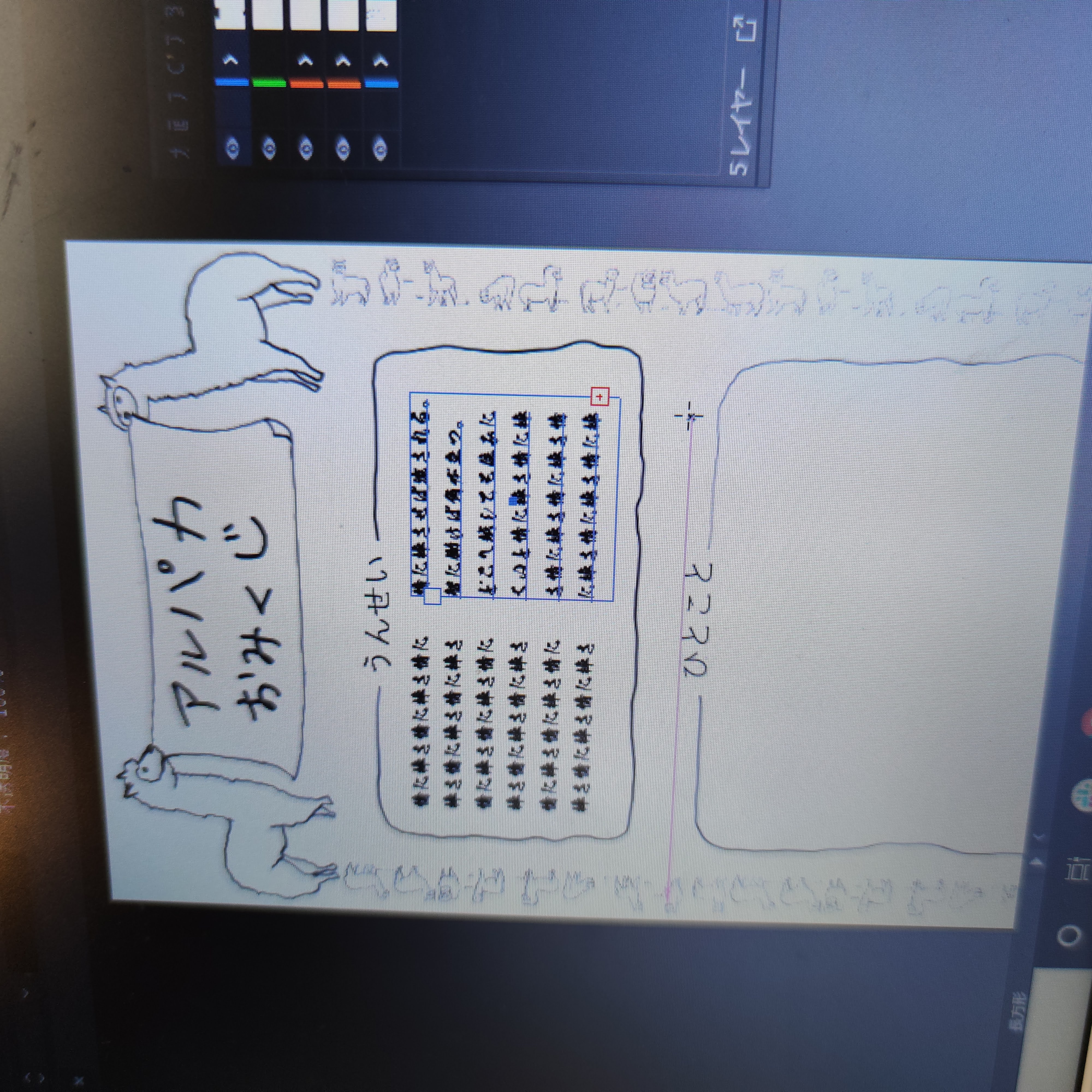 サーマルプリンターが縦幅長めの画像印刷になぜかうまく対応せず、最終的には1枚の画像を5分割して、連続してならべて出力させました。(力技です)