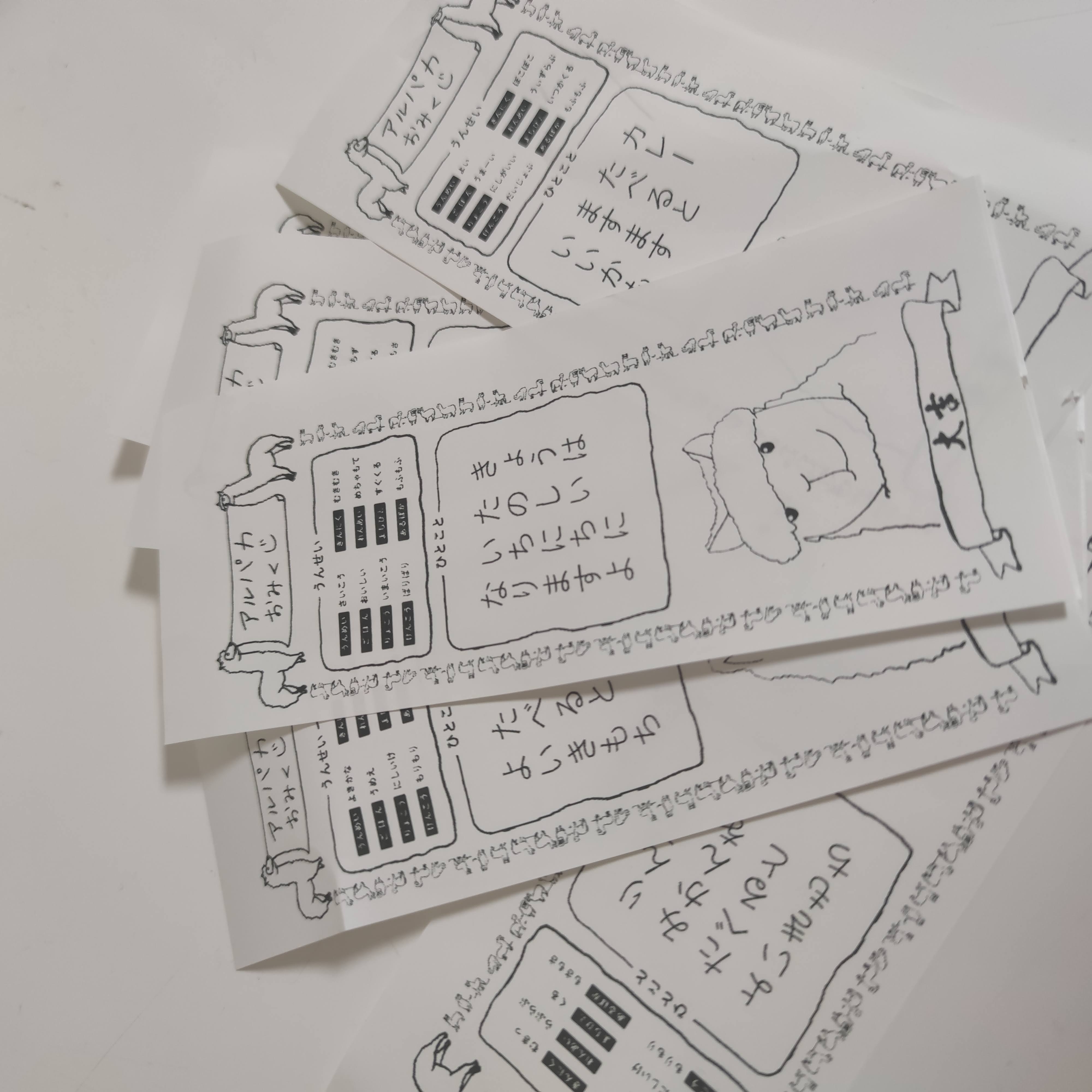 ゆめかわアルパカにお賽銭をあげると、口からおみくじを出してくれるという機構です。