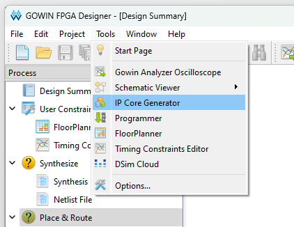 メニュバーのTools→IP Core Generatorで作ります。