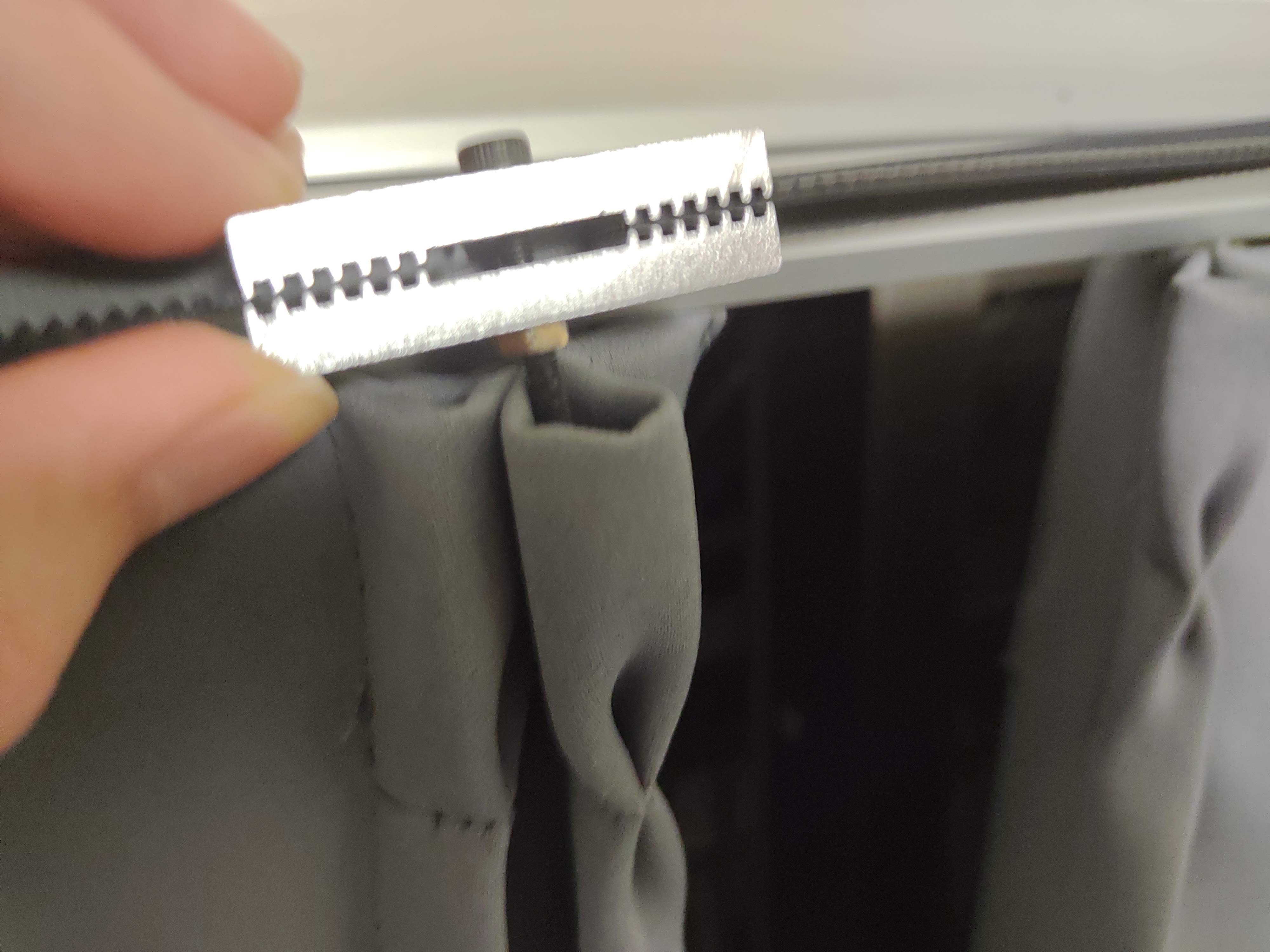 カーテンはタイミングベルトから生えてるネジを穴に刺すことで固定しています。