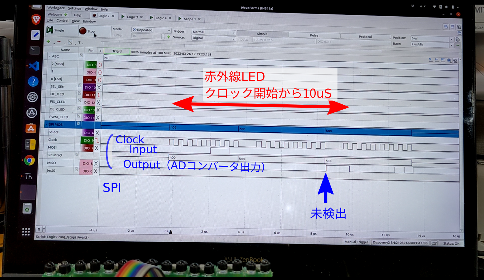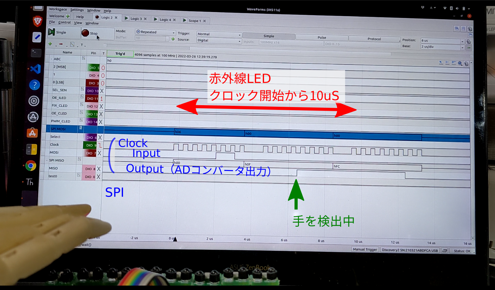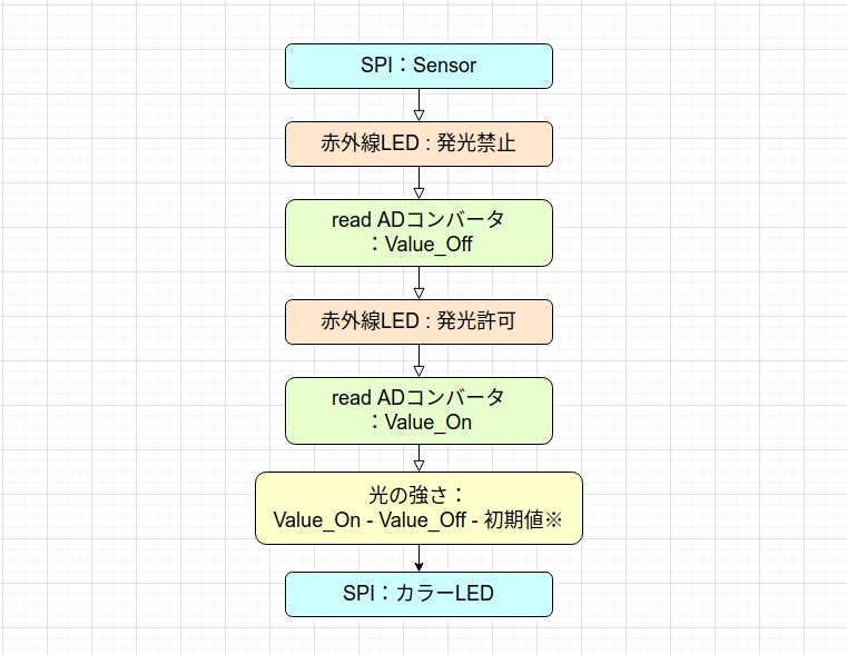 1.ADコンバータ※をSPIで読むと同時に赤外線LEDを10uSオーバードライブ