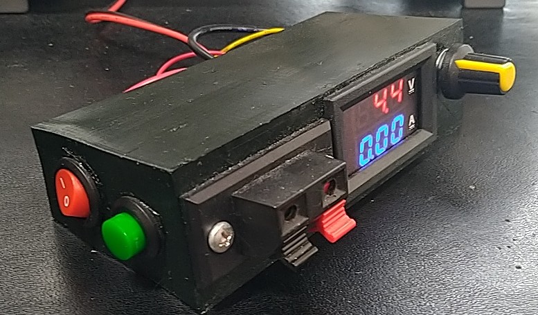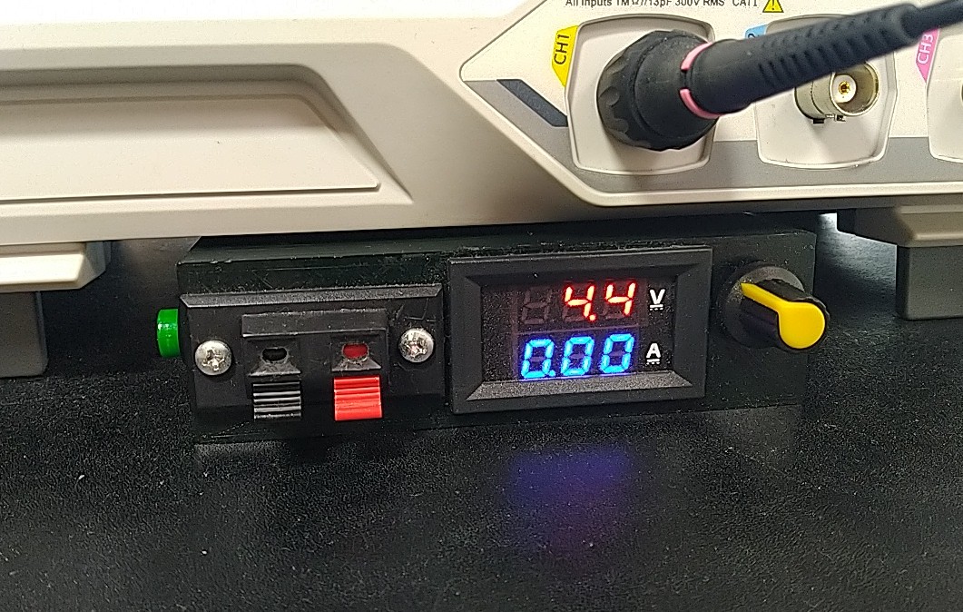 降圧コンバータのマルチターン可変抵抗を外して、10KΩの可変抵抗をつないでいます。