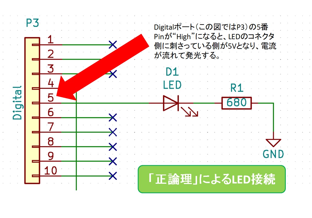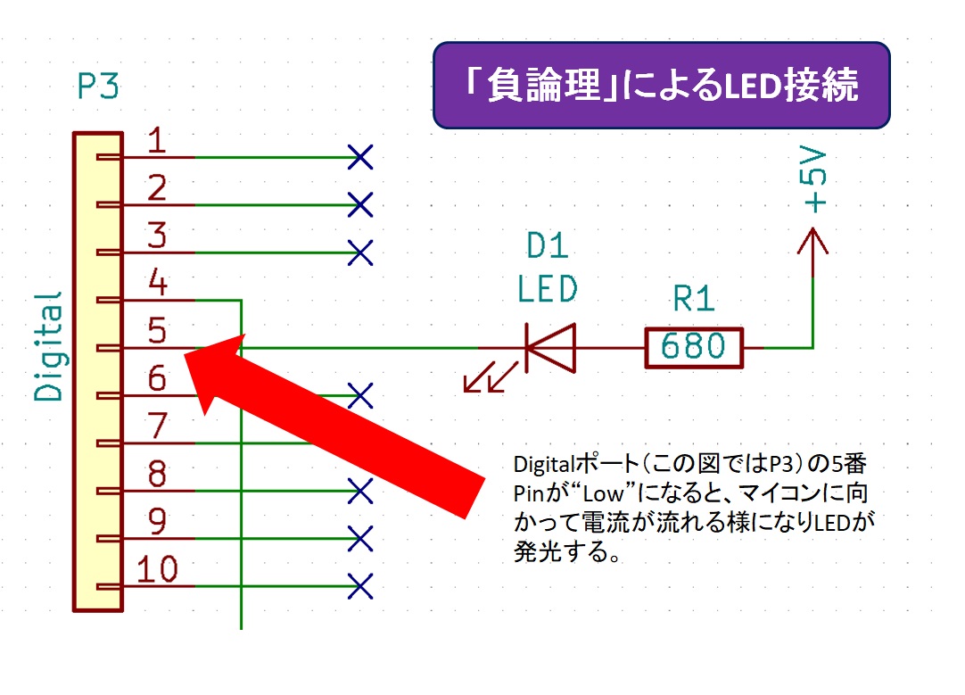 正論理/負論理については本格的に動く回路を製作する際に改めて書きたいと思いますので、今は「外の回路の作り方によってプログラムの動き方が変わる」という事を覚えておいてもらえればいいと思います。