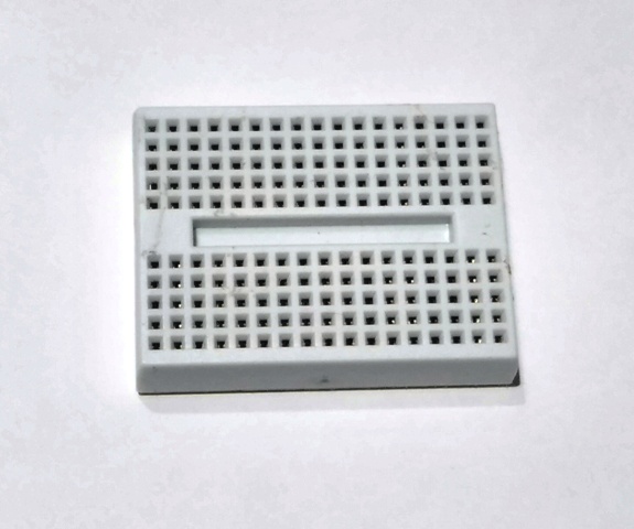 製作には「ブレッドボード」を使用します。実験用や小規模な回路を作る際に利用される器具で、電気回路というと必ずと言って良いほどに登場します。「はんだ付け」をしなくても動作する回路を自作できるので、机の上で手軽に電子回路を製作できるのが魅力です。