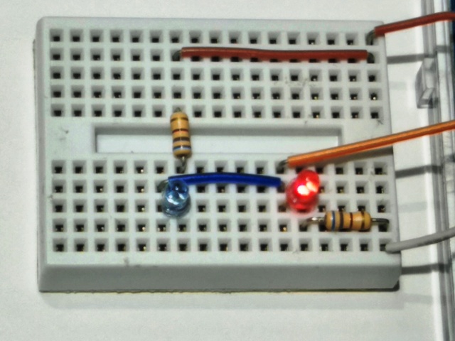 動作している事が確認できたら、もう少し回路を追加してちょっとした実験をしてみましょう。