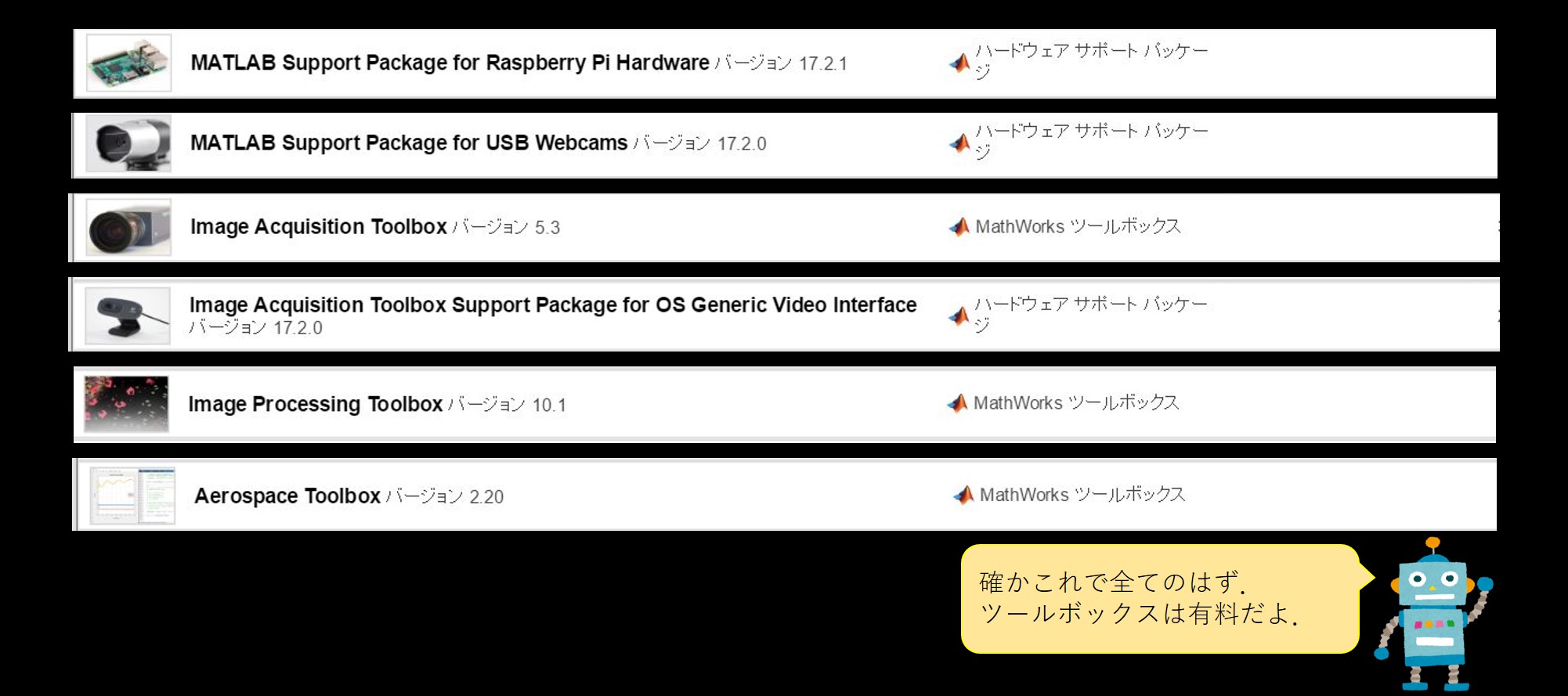 ツールボックス,サポートパッケージが必要です.
