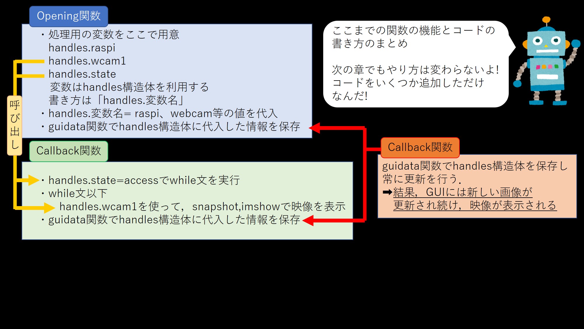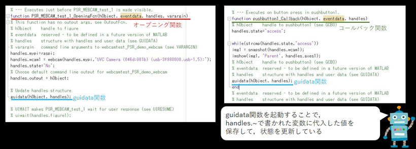 MATLAB guideで今回作成したGUIには,Opening関数,Callback関数,guidata関数